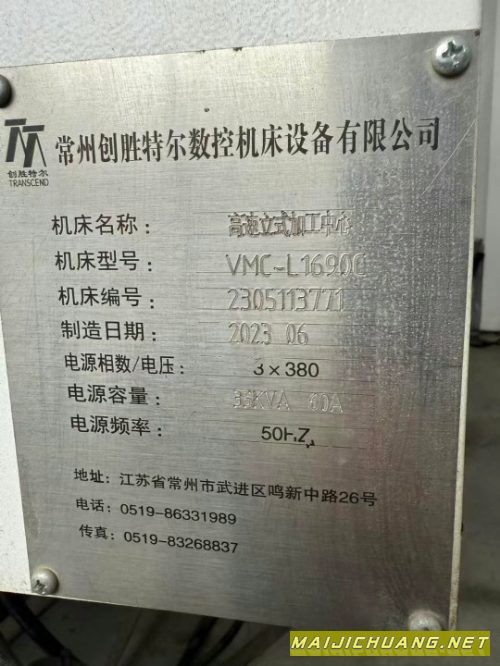 创胜特尔1690立式加工中心,BT50主轴皮带8000转,带刀库,两线一硬,带排屑机,真实使用几百个小时,2023年设备,
